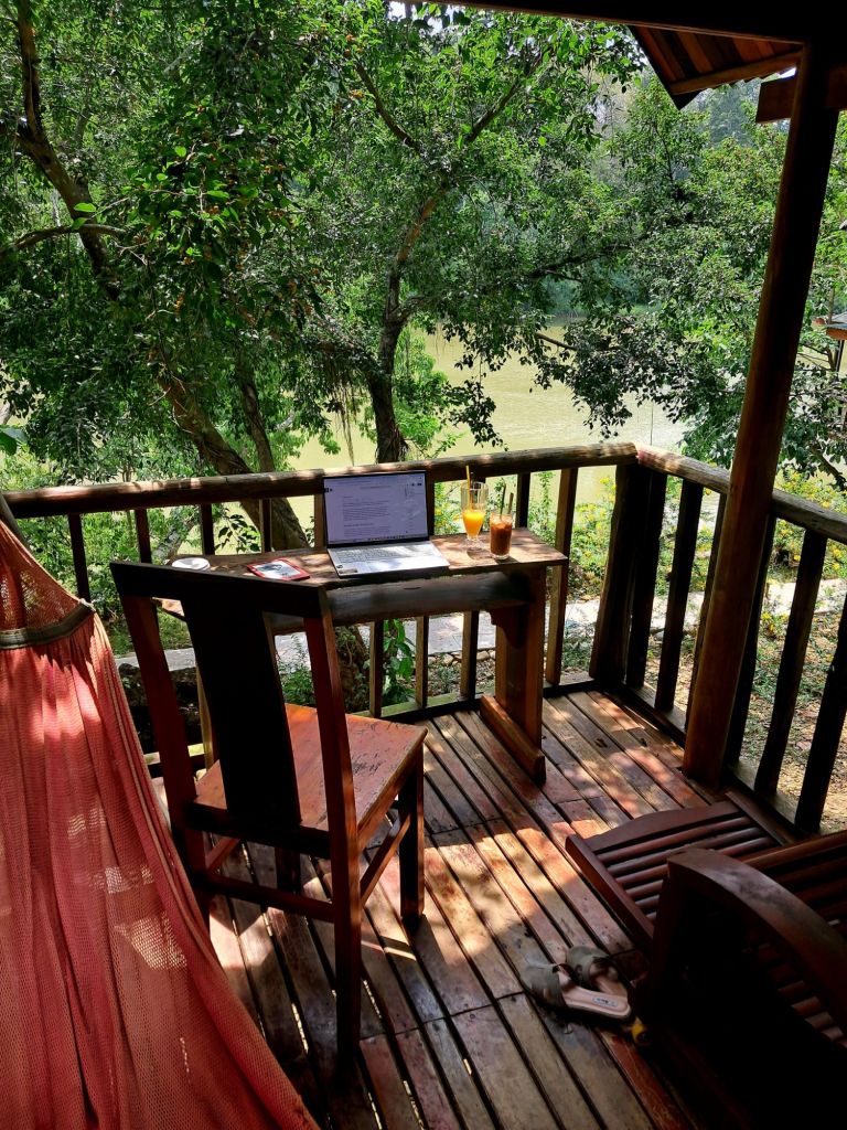 Desigur, în trei zile de liniște nu poți spera la progrese creative spectaculoase. Totuși, ritmul în sine capătă altă consistență când fiecare dimineață începe sub impulsul inevitabil al soarelui de la ora șapte, ale cărui raze pătrund fără milă printre draperii. Deschid ușa bungalowului cu vedere spre râu și inspir adânc aerul proaspăt, încărcat de miresme de pământ umed, frunziș și flori sălbatice. După micul dejun, urmează plimbările zilnice pe cărările înguste ale stațiunii, săpate discret în inima vegetației, pentru a profita de răcoarea matinală care se risipește înainte de ora zece. Înapoi la bungalow, deschid larg ferestrele, las aerul să circule nestingherit, mă așez la masa de lucru și scriu.